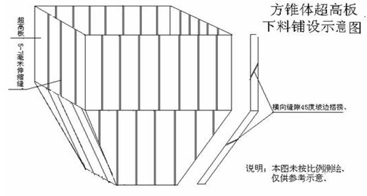 方錐體;下料時(shí)其主要形狀為長(zhǎng)方型鋪設(shè)、剩下的三角形、按現(xiàn)場(chǎng)的實(shí)際尺寸下料。豎向縫隙應(yīng)留5-7毫米伸縮縫隙,橫向縫隙45度坡邊搭接。如圖所示。